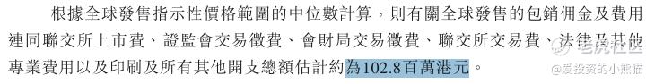 然后这个票招股书上按发售价范围的中位数26.80港元计算,公开的上市所有开支总额约为1.03亿港元,募资额约7.51亿港元,占比约13.68%,开支相比募资额算是一般化了。