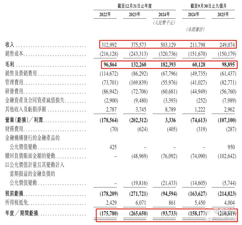 收入分别约为人民币3.13亿元、3.76亿元、5.03亿元、2.12亿元、2.49亿元,2025年前9月同比+17.60%;