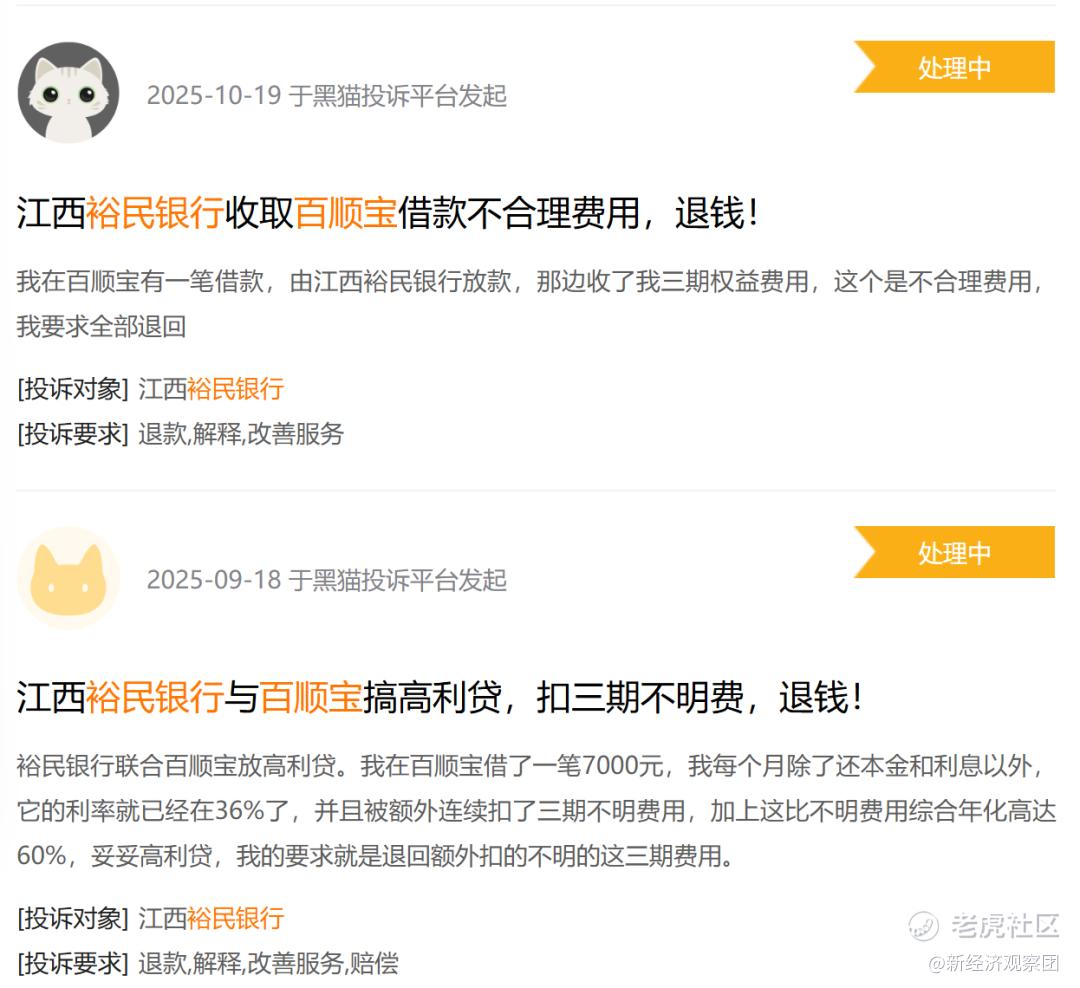 从行业上看,2025年实施的《互联网助贷新规》明确要求商业银行必须“严控综合融资成本”并独立完成风控,这直接压缩了通过高利率覆盖高风险与高渠道成本的旧有模式空间。与此同时,通过外部渠道投放的高收益贷款,其资产质量与风险实质由银行承担,在经济下行周期中不良风险将持续暴露并侵蚀资本。而该业务引发的利率与催收投诉,也成为裕民银行亟需补齐的金融消保管理漏洞。