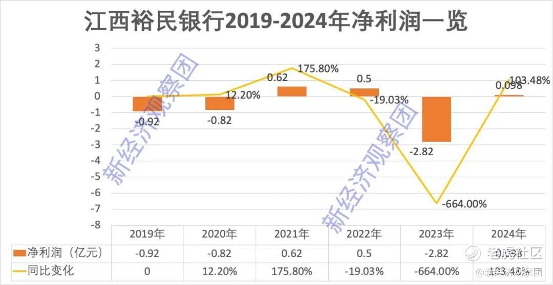 但从行业来看,2024年裕民银行不足千万元的净利润,在当年19家民营银行中排名倒数第一,还不及规模不如自己的新安银行,后者还实现了0.46亿元净利润。