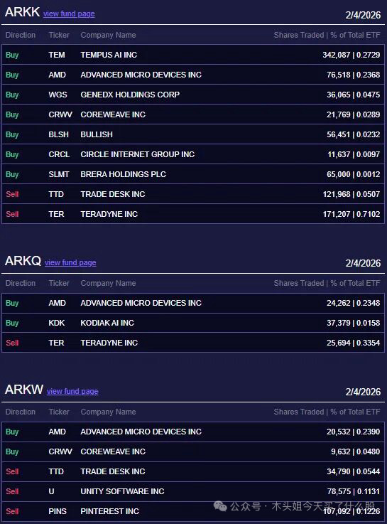 木头姐买入3000万美元AMD、2100万美元TEM、1500万美元TSLA、320万美元WGS、270万美元CRWV、220万美元BLSH、80万美元CRCL、34万美元KDK、8万美金SLMT。连续3天都是抄底的节奏,散户还真跟不上🥲