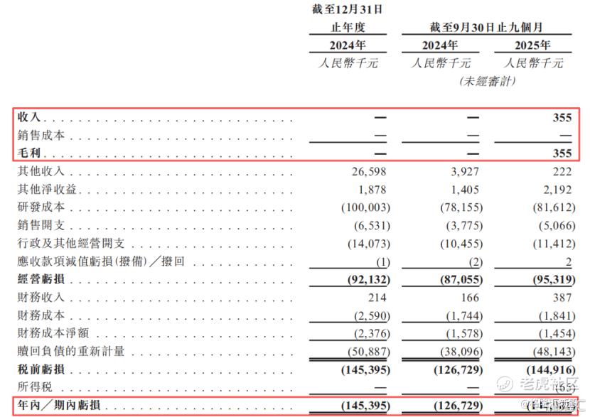 2024年及2025年1-9月(报告期),公司录得的收入分别为零、40万元。这40万元的收入主要产生自根据MENA许可及分销协议就玛硒洛沙韦口服剂提供的药品注册辅助服务。