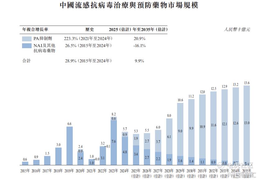 预计到2035年该市场规模将达到136亿元,其中PA抑制剂和其他抗病毒药物占130亿元,NAI则占6亿元。