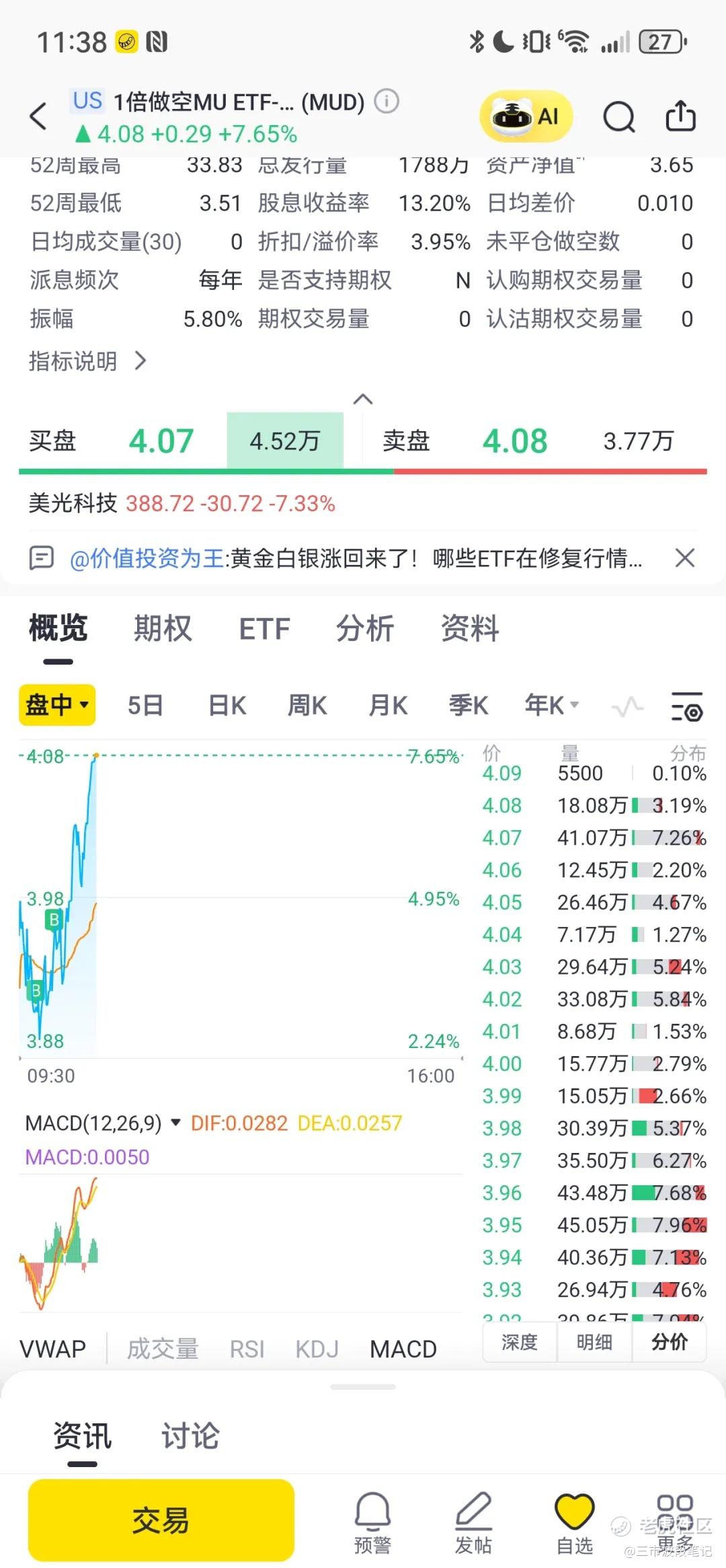 盘中 3 成仓位做空 $美光科技(MU)$ ,今日夜盘减仓一半,仅剩 1.5 成。