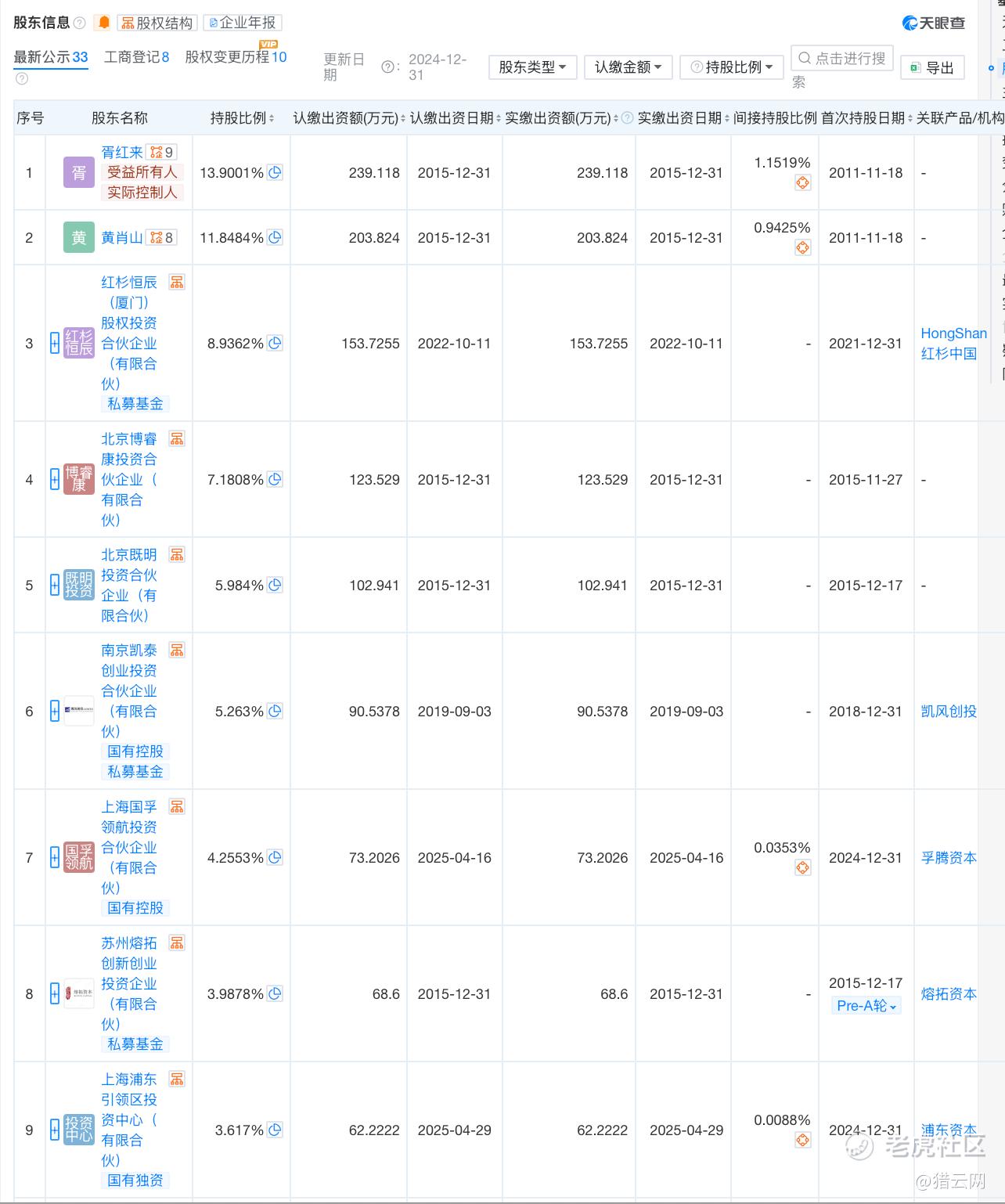 红杉持股8.9362%股,百度持股1.3254%。