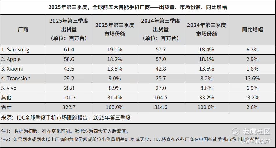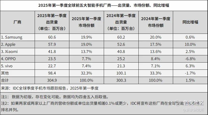 从市场数据看,IDC2025年一季度数据显示,OPPO全球出货量2350万台,市场份额7.7%,排名第四,增长势头下降严重,后面第三季度甚至跌出前五。