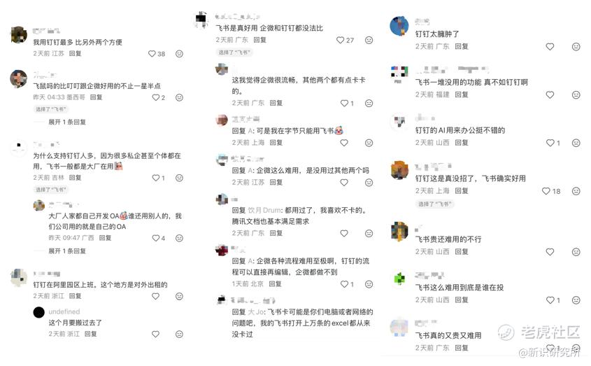 有的网友觉得飞书的好用是企微和钉钉无法比较的,有的认为企微相对流畅,其他两个都有卡顿,还有的网友认为钉钉比较方便,说法各有优劣。