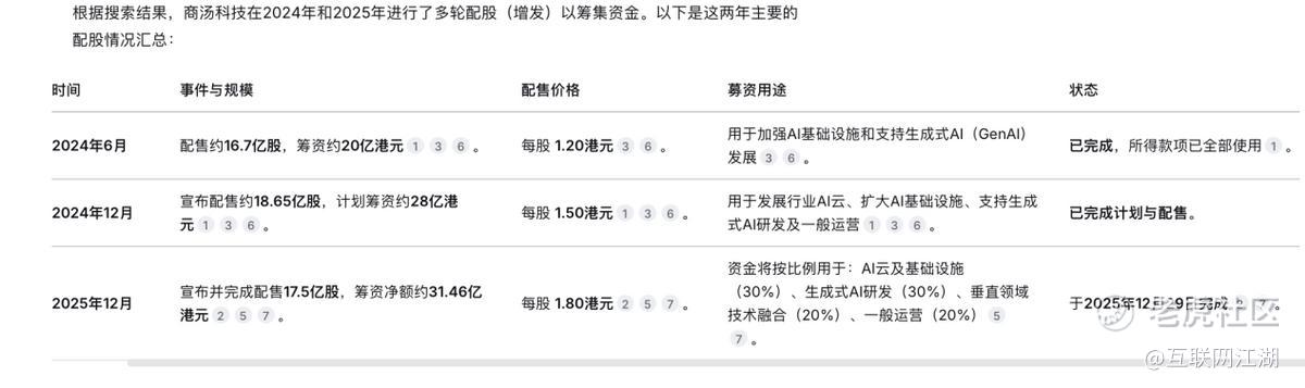 用DeepSeek盘了一下,2024年到2025年商汤科技做了三次增发,总筹资金额可能超过79亿港元。