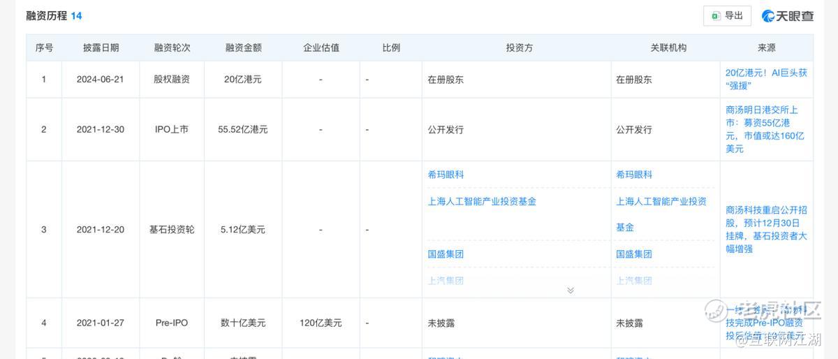 天眼查APP显示,不完全统计,如果算上IPO,那么商汤科技至少有过9轮融资。