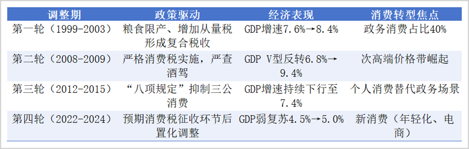 本轮自2022年开启的调整周期已历经4年,整体依旧没有走出复苏通道,时间相较以往较长。不同点在于,当前行业政务型消费占比已经很低,个人消费占据主流,行业调整多与宏观经济增长挑战下消费需求下滑相关。