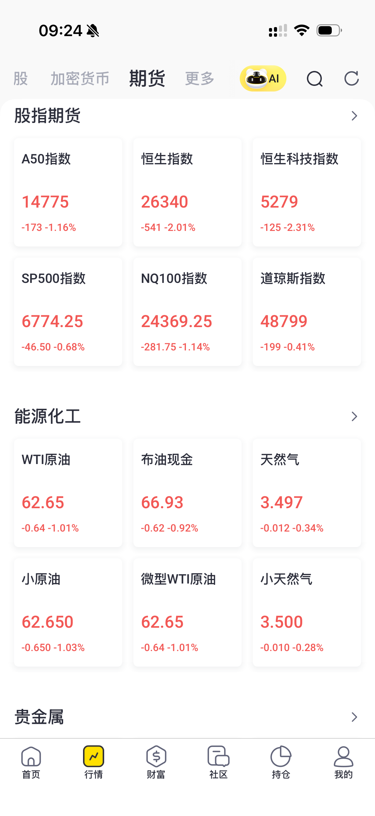 黄金股跌幅显著, $山东黄金(01787)$ 跌超5%, $招金矿业(01818)$ 跌4.8%, $紫金矿业(02899)$ 跌4%。