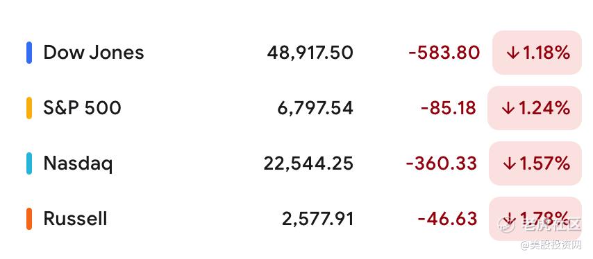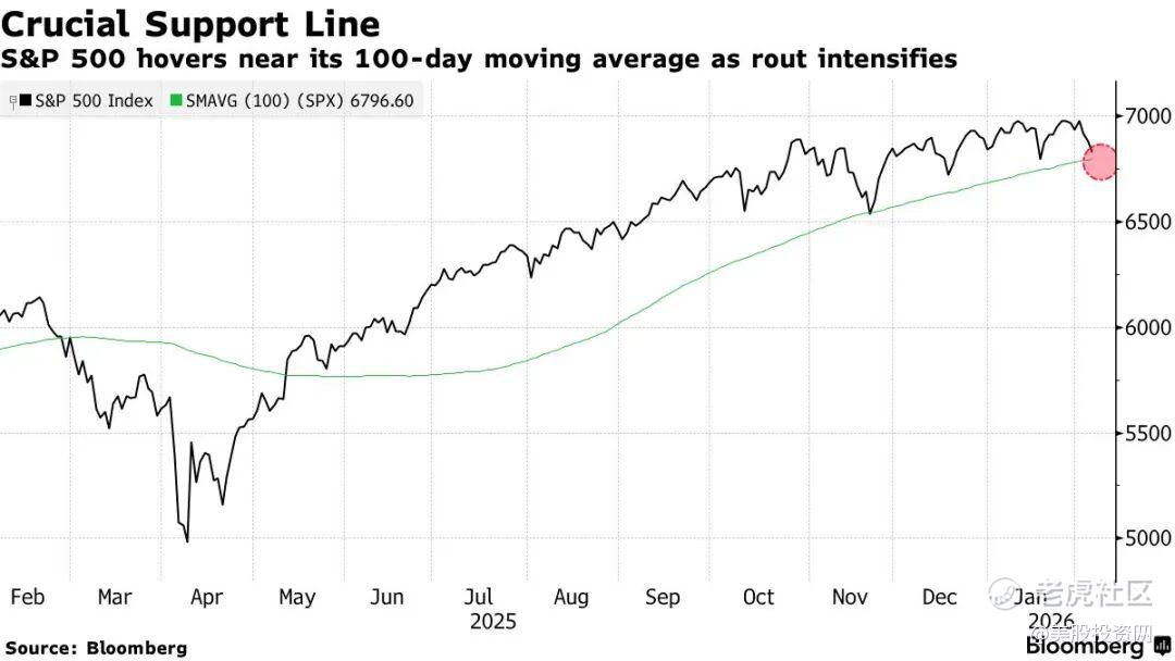 不仅纳指收跌近1.6%,道指也大幅回撤约600点,标普500指数更是自去年以来首次盘中击穿了关键的100日移动均线。这种无差别的调整显示出,投资者的心态已从局部的利润了结,转变为对宏观逻辑与行业生存根基的深度审视。