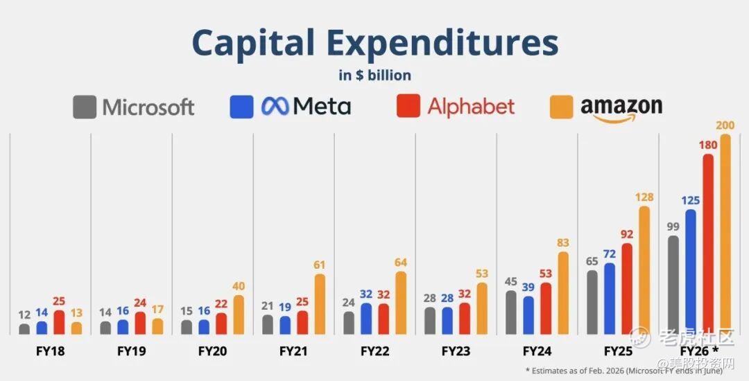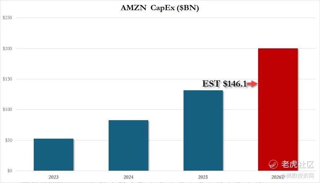 导致抛售的核心逻辑在于意外猛增的资本开支指引:亚马逊预计 2026 年资本支出将高达 2000 亿美元,远超华尔街预期,这直接导致其利润指引较分析师预期低了 14%。