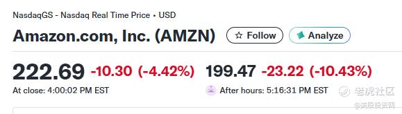 今日盘后,亚马逊 (AMZN) 的财报同样陷入了类似的逻辑陷阱。尽管其 2025 年第四季度营收及 AWS 云业务增长均强于市场预期,展现了极强的业务韧性,但股价盘后一度重挫超 10%。
