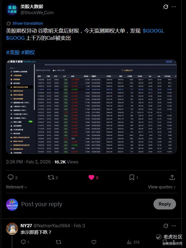 做市商对冲压制: 当机构卖出看涨时,做市商作为对手盘买入。为了对冲风险,做市商必须在现货市场卖出股.票。这种结构性的抛压导致谷歌在财报后直接跌近5%,验证了我们在 X 平台上的深度解析。