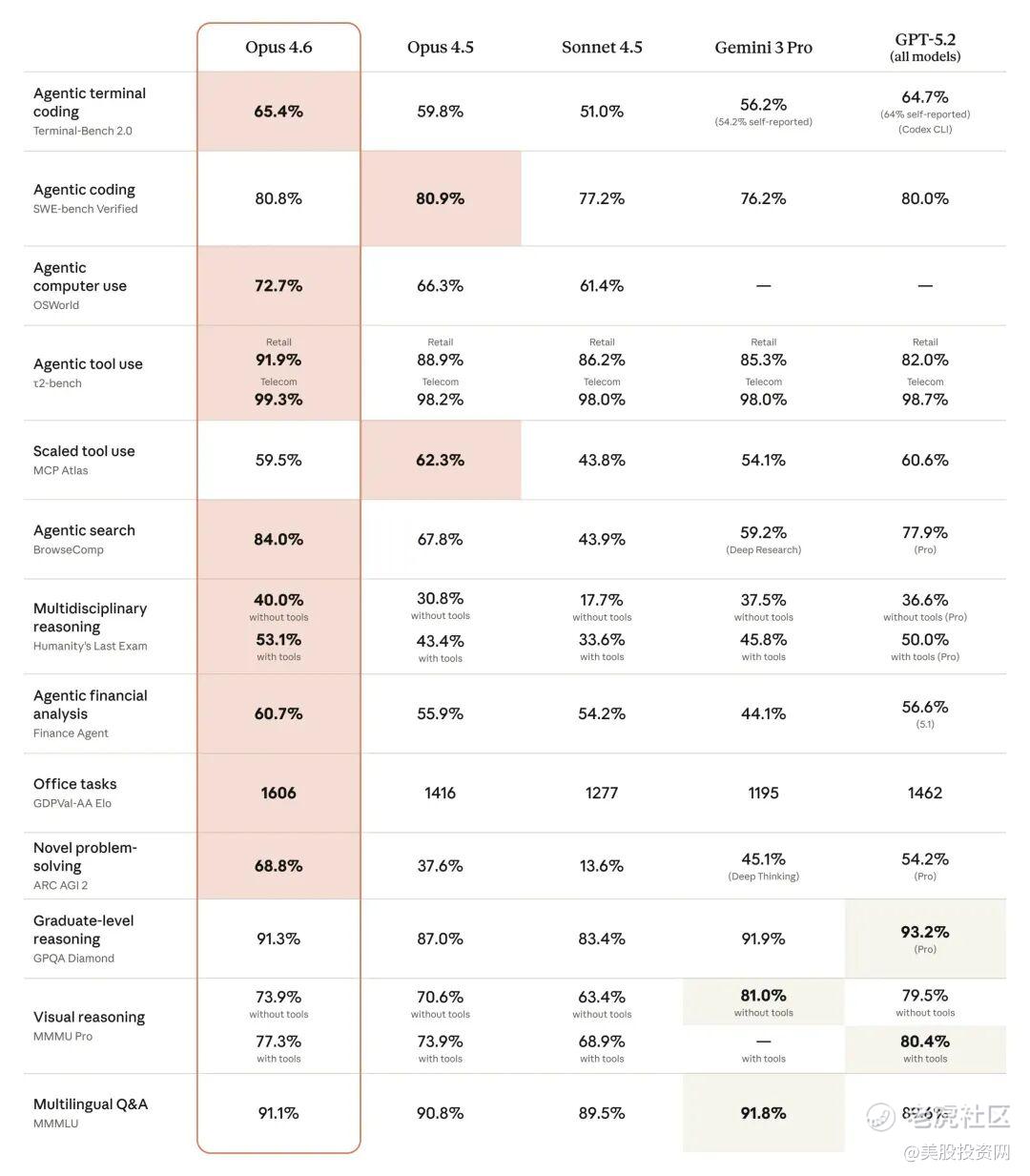Claude Opus4.6目前在Finance Agent基准测试中排名第一。该测试主要评估AI代理在核心金融分析师任务中的表现能力。