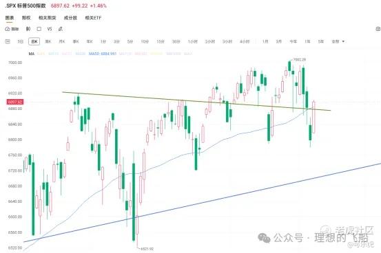今晚先不做个股解读,给他们多跑两天看看。”SPX两个交易日都站稳6881(同时QQQ站稳600)的话,就是反弹趋势了”以这条稳准。