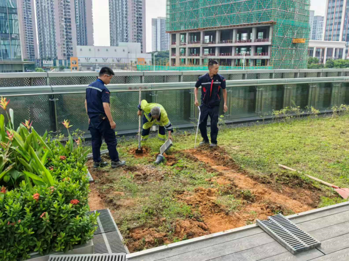 面对上千平方米黄土裸露、建筑垃圾堆积的难题,团队利用休息时间补栽苗木200余株,开垦三楼闲置区建成“员工共享菜园”,清理外围垃圾超10吨,并坚持每周修剪、每月施肥,针对灌木研发根部保湿法,按有机标准协助员工打理菜地。如今,空中花园绿意盎然,菜园作物成为员工心头好。
