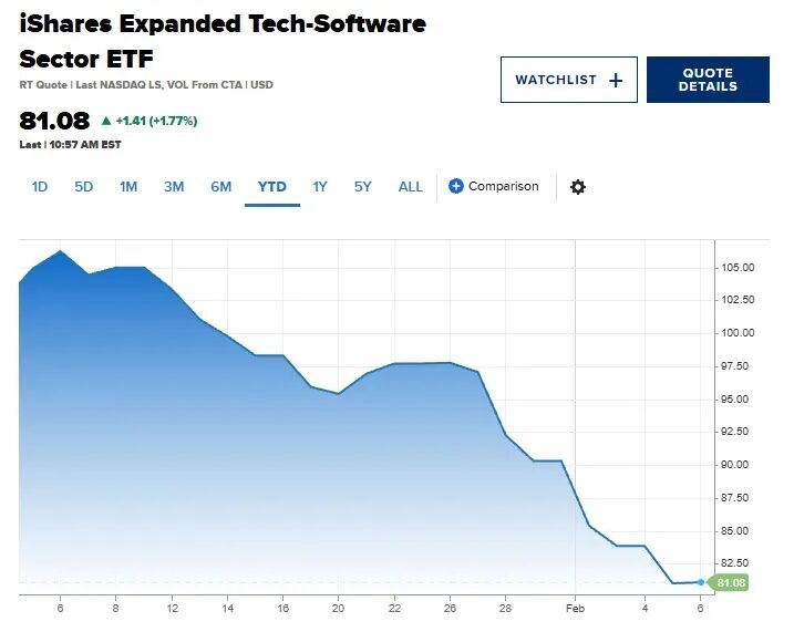 即便是大型软件公司也未能幸免,Microsoft(MSFT)、Oracle(ORCL)、Salesforce(CRM)、Adobe(ADBE)和ServiceNow(NOW)年内均出现两位数跌幅。