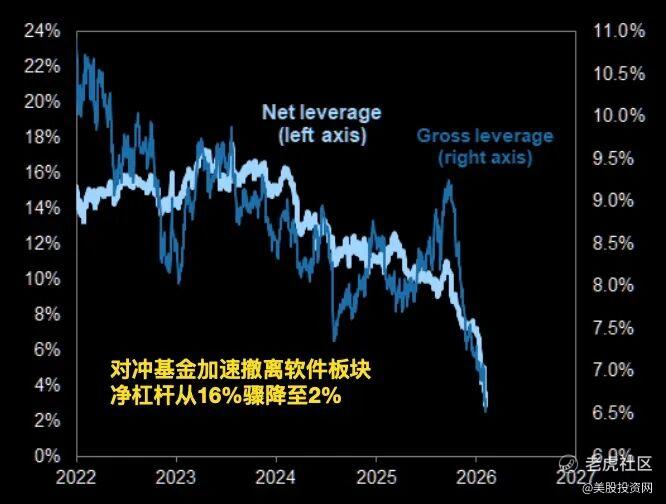 近期,对冲基金大幅削减了对软件行业的风险敞口,整体净杠杆已从约16%快速下降至接近2%,资金态度出现明显转向。