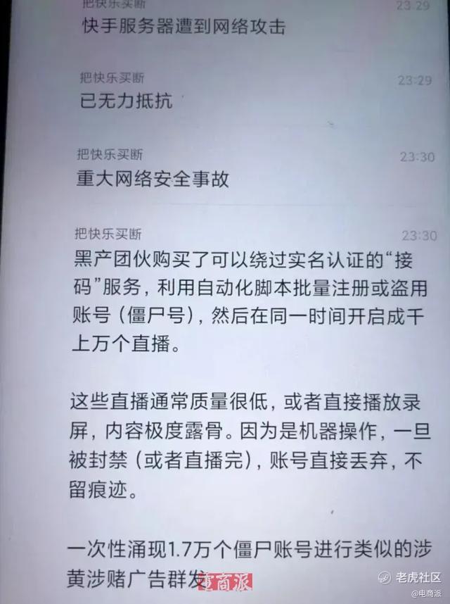 当时,快手平台在短时间内被上万个僵尸账号同步发起的自动化攻击攻陷,大量不良内容肆意传播,部分直播间观众人数甚至逼近10万。