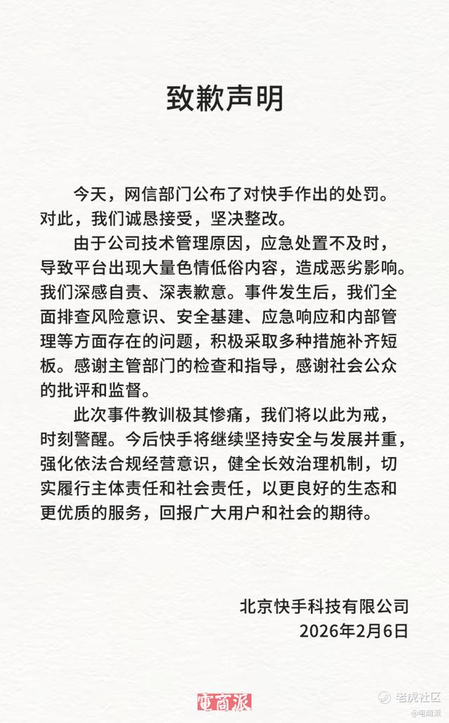 声明中还强调,此次教训非常深刻,快手会引以为戒,时刻保持警惕。