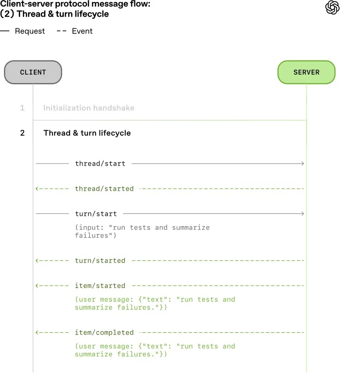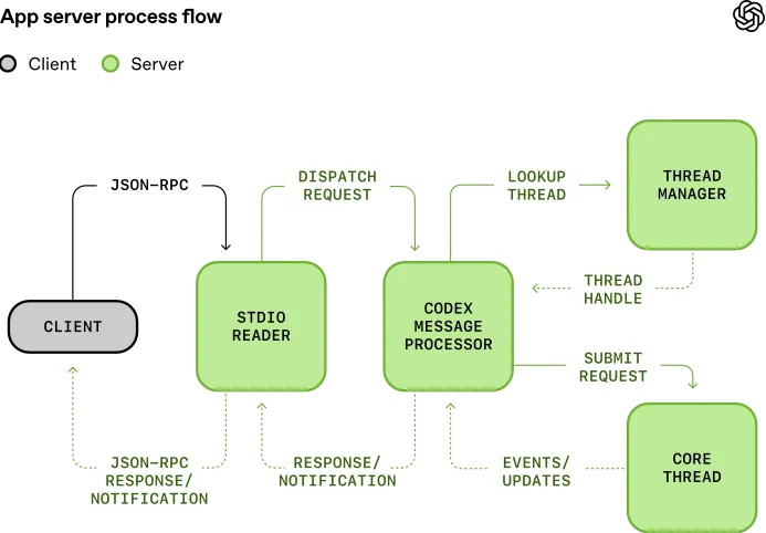 而App Server正是为此设计的桥梁。它基于JSON-RPC(即一种结构化的远程过程调用协议,允许程序通过标准数据格式相互调用各自的功能)构建,并采用双向通信模式,客户端和服务器可以主动互相发送请求。