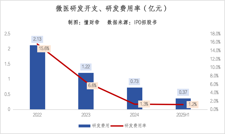 AI时代,研发费用的大幅缩减,更令人诧异。2023、2024年,微医的研发开支、研发费用率显著下滑。