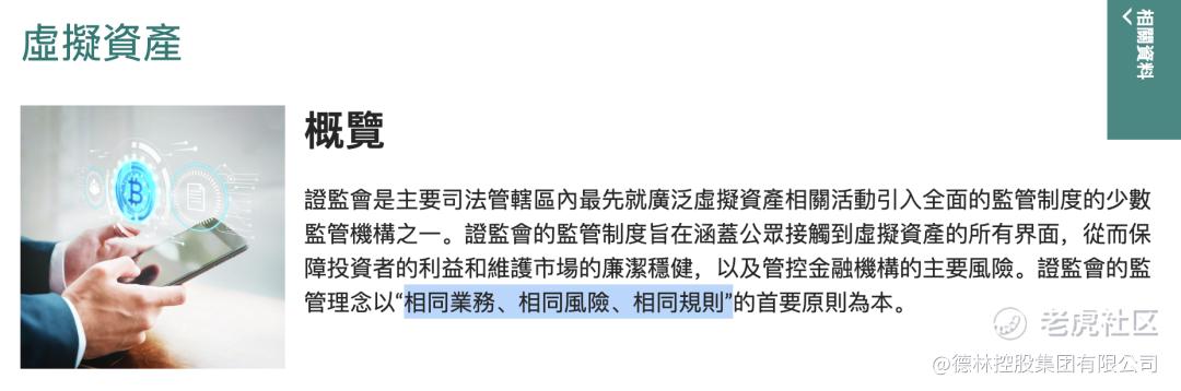 2月6日的通知里对境内主体去境外开展RWA业务还提到一个非常重要的监管原则——“相同业务、相同风险、相同规则”。这句话原封不动的照搬了2023年9月28日香港证监会对虚拟资产的监管理念!说明中央政府对香港在金融领域的监管原则是非常认可的,又或者这本身就是中央计划的一部分。
