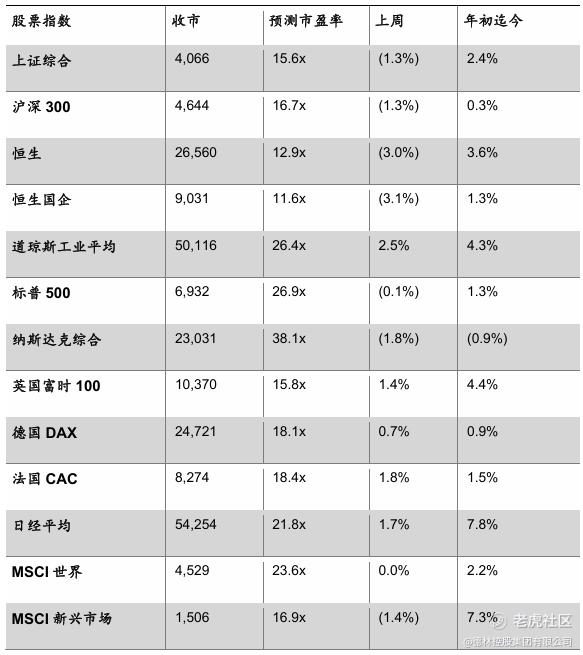 本周由于增值税的不确定性以及对于中国互联网科技公司是否能达到市场预期的担忧使得中国内地和香港市场出现较大回撤。我们认为当前中国科技公司争夺AI接口已经有初步陷入内卷的迹象,AI大模型服务逐渐商品化,建议投资者审慎观察竞争格局后再逢低配置有护城河的公司。另一方面,由于上海开始收储等一系列房市边际改善信号,市场开始憧憬房市的止跌企稳。我们认为左侧布局房地产板块的投资者应该密切关注一月份居民活期存款增速以确定是否有“小阳春”楼市行情,并避免投机交易承压的二、三线开发商,以获得稳定的收益。资产配置方面,我们认为虽然情绪降温,但中国股市流动性仍较充沛,建议投资者挑选趋势向好、基本面强劲、竞争压力较小的优质企业配置,以获得超额收益。