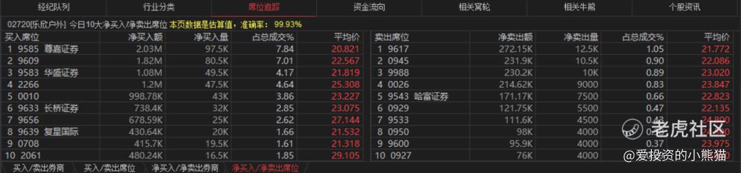 乐欣户外(02720.HK)买盘席位有9585、9609、9583、2266等,卖盘第一席位是9617,0950在卖盘第八席位。