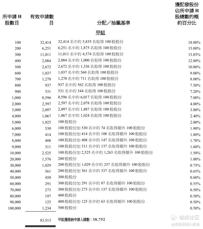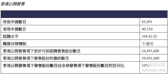 配售情况:85091人认购,这次公配104.82倍,由于机制B分配,无回拨比率,国配有6.80倍,一手中签率18.00%,认购50手稳中1手,同时乙组1578人申购,其中顶头槌申购31张,获配率0.40%-1.15%。
