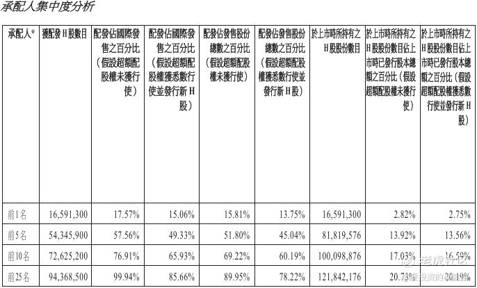 爱芯元智(00600.HK)国配货是比较集中,前25大承配人上市后所持股份数目占上市后已发行股份总数20.19%。爱芯元智(00600.HK)这个票稳价人是中金,有绿鞋4.44亿港元。