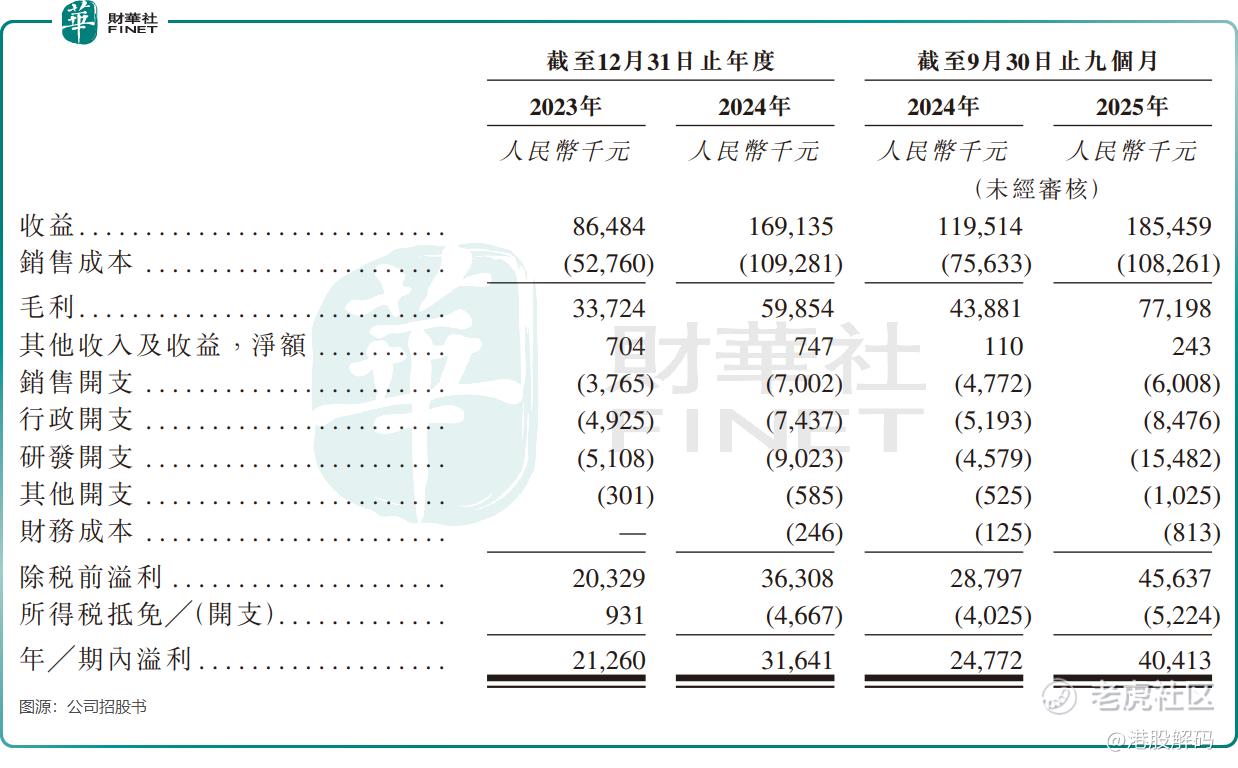 2023年至2024年,公司收入从8648.4万元增长至1.69亿元,接近翻倍;年内溢利从2126万元增至3164.1万元。2025年前三季,收入进一步增至1.85亿元,期内溢利达4041.3万元,展现出强劲的增长势头。