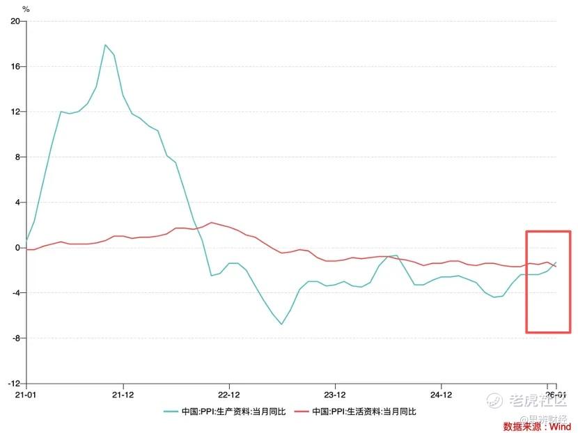 最新公布的2026年1月数据可以非常确切看到,当期生产资料PPI正式反超生活资料PPI,这一方面我们如前文所言是“反内卷”战役的阶段性胜利,但另一方面也揭示当前疏通价格传导机制的紧迫性:生产资料PPI增速大过生活资料,价格传导机制受阻,下游企业的成本无法转嫁,将严重压缩后者的利润空间。