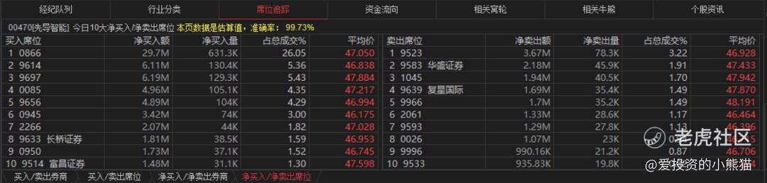 先导智能(00470.HK)买盘席位有0866、9614、9697、0085、0945、0950等,卖盘第一席位是9523。