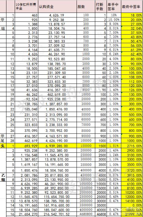 这个票中签率是很高,而且几乎是线性的中签率