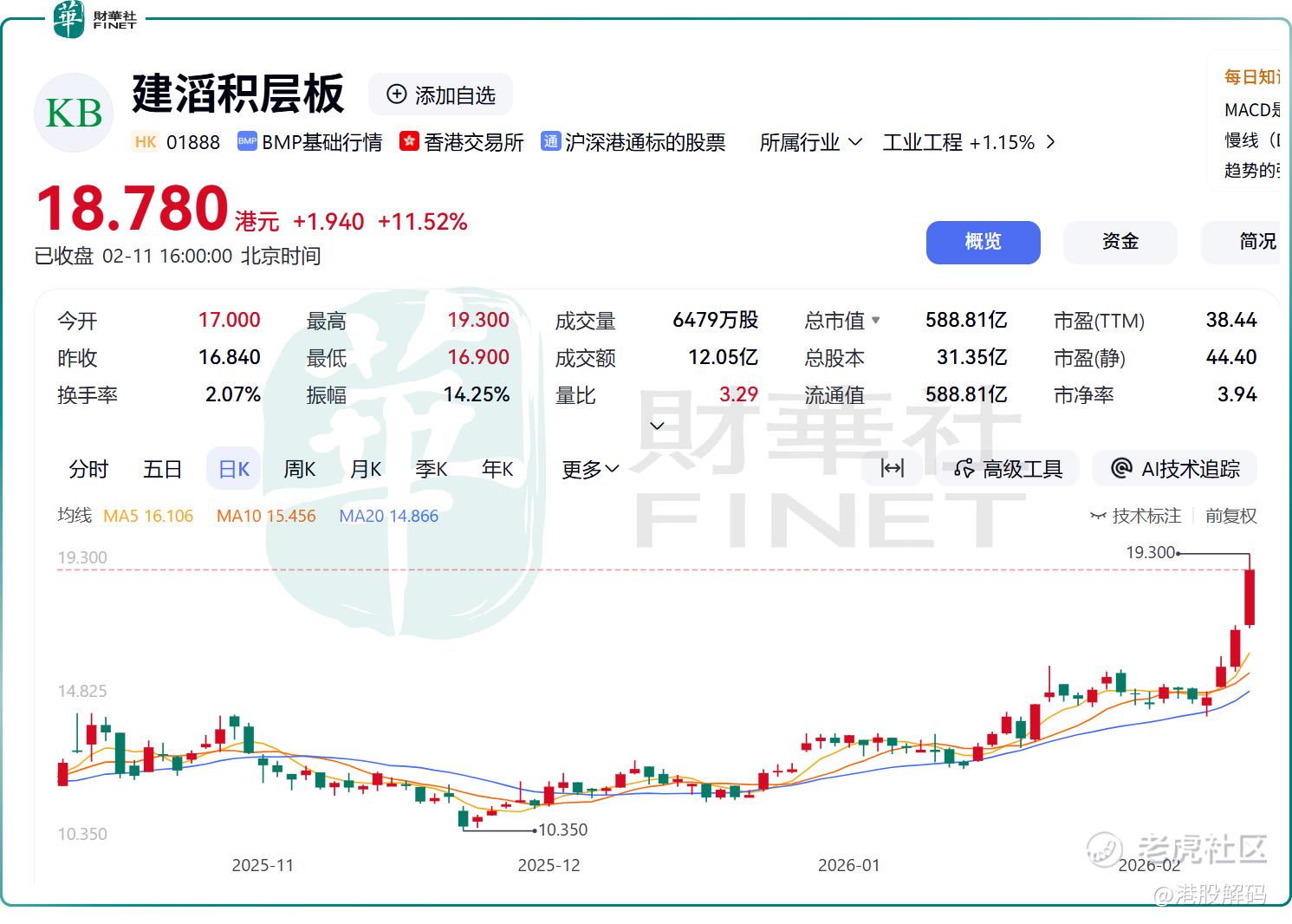 2月11日,港股的建滔系股价大涨,截至收盘, $建滔积层板(01888)$ 大涨11.52%,创下历史新高, $建滔集团(00148)$ 大涨4.64%,亦创近几年的阶段新高。