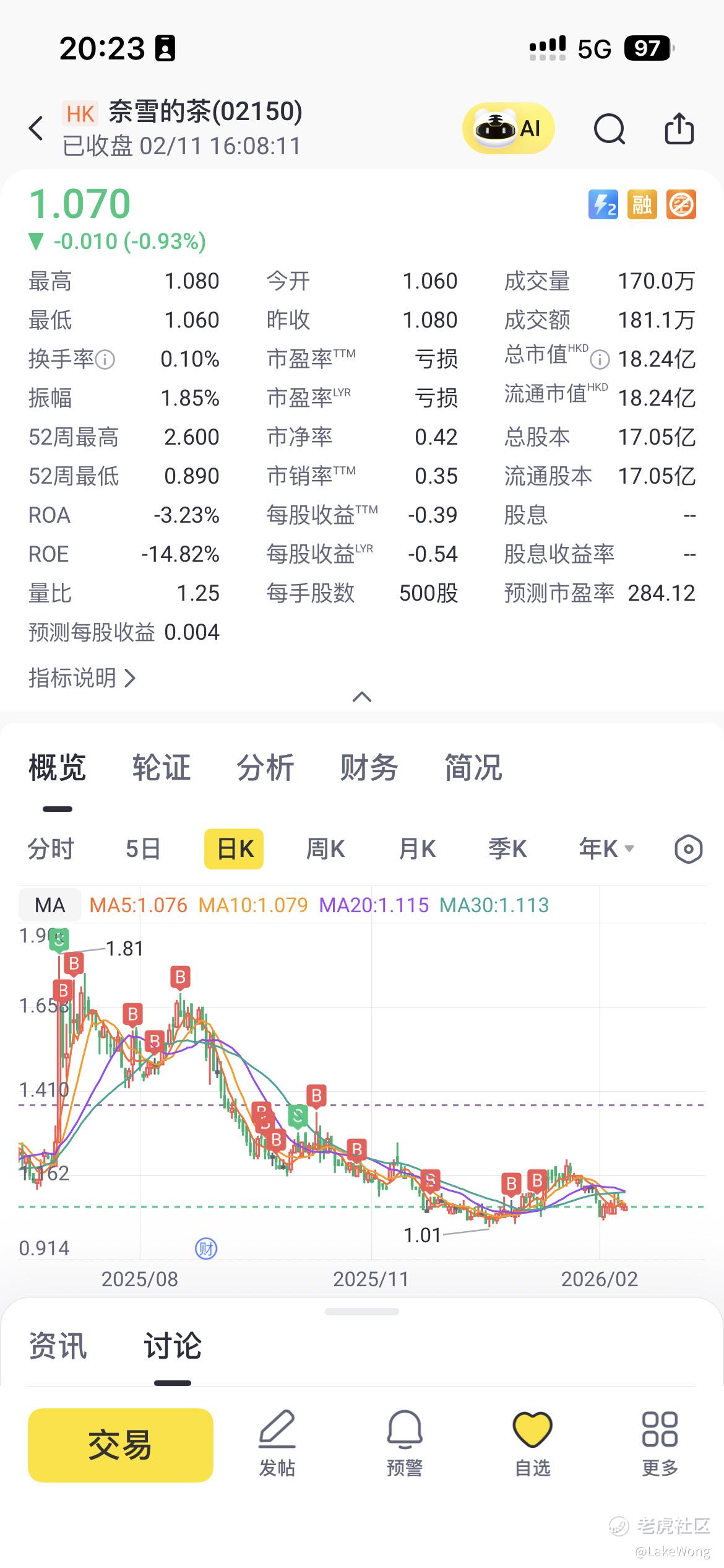 持续定投。本人处在深圳,奈雪是很常见的品牌。另外根据财报显示,2025.06.30前,该公司有27.93亿现金/现金等价物储备,总负债20.44亿。目前市值只有18亿。茶百道都有98亿多的市值。