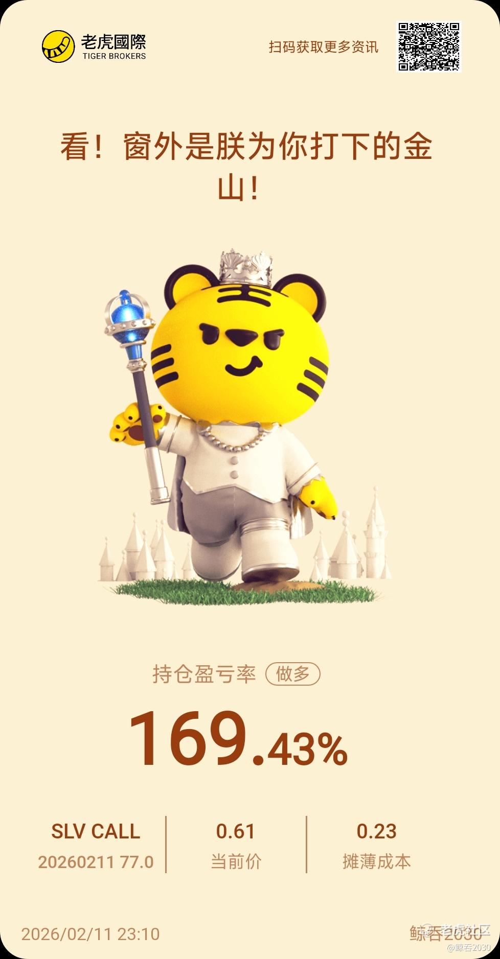 {"i18n":{"language":"zh_CN"},"detailType":1,"isChannel":false,"data":{"magic":2,"id":531667888120904,"tweetId":"531667888120904","gmtCreate":1770822618259,"gmtModify":1770822630209,"author":{"id":4118205146243860,"idStr":"4118205146243860","authorId":4118205146243860,"authorIdStr":"4118205146243860","name":"鲸吞2030","avatar":"https://static.laohu8.com/default-avatar.jpg","vip":1,"userType":1,"introduction":"","boolIsFan":false,"boolIsHead":false,"crmLevel":7,"crmLevelSwitch":1,"individualDisplayBadges":[],"fanSize":36,"starInvestorFlag":false},"themes":[{"themeId":"5bfad02ab61749c8bfe6573ac7bbe8a3","categoryId":"b76d3c59fc044df59779c041b25852a6","name":"晒晒更赚钱","type":0,"rnLink":"https://laohu8.com/RN?name=RNTheme&page=/theme/detail&rndata={\"themeId\":5bfad02ab61749c8bfe6573ac7bbe8a3}&rnconfig={\"headerBarHidden\": true}","description":"晒晒你的盈亏单,秀秀虎友们的实力!","image":"https://static.tigerbbs.com/347184265ee0be8c363259951f8033cb"}],"images":[{"img":"https://static.tigerbbs.com/9d8615c570693f78c5ead29647b748af","width":"978","height":"1877"}],"coverImages":[{"img":"https://static.tigerbbs.com/9d8615c570693f78c5ead29647b748af","width":"978","height":"1877"}],"title":"","html":"<html><head></head><body><p><a href=\"https://laohu8.com/OPT/SLV 20260211 77.0 CALL\">$SLV 20260211 77.0 CALL$ </a> </p><img src=\"https://static.tigerbbs.com/9d8615c570693f78c5ead29647b748af\" tg-width=\"978\" tg-height=\"1877\"></body></html>","htmlText":"<html><head></head><body><p><a href=\"https://laohu8.com/OPT/SLV 20260211 77.0 CALL\">$SLV 20260211 77.0 CALL$ </a> </p><img src=\"https://static.tigerbbs.com/9d8615c570693f78c5ead29647b748af\" tg-width=\"978\" tg-height=\"1877\"></body></html>","text":"$SLV 20260211 77.0 CALL$","highlighted":1,"essential":1,"paper":1,"likeSize":3,"commentSize":0,"repostSize":2,"favoriteSize":0,"link":"https://laohu8.com/post/531667888120904","repostId":0,"isVote":1,"tweetType":1,"viewCount":204,"commentLimit":10,"likeStatus":false,"favoriteStatus":false,"reportStatus":false,"symbols":["SLV"],"verified":2,"subType":0,"readableState":1,"langContent":"EN","currentLanguage":"EN","warmUpFlag":false,"orderFlag":false,"shareable":true,"causeOfNotShareable":"","featuresForAnalytics":["晒单贴"],"commentAndTweetFlag":false,"andRepostAutoSelectedFlag":false,"upFlag":false,"length":21,"optionInvolvedFlag":true,"xxTargetLangEnum":"ORIG"},"commentList":[],"isCommentEnd":true,"isTiger":false,"isWeiXinMini":false,"url":"/m/post/531667888120904"}