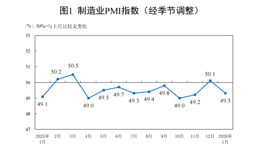 1月份制造业PMI回落至49.3%,略高于去年同期
