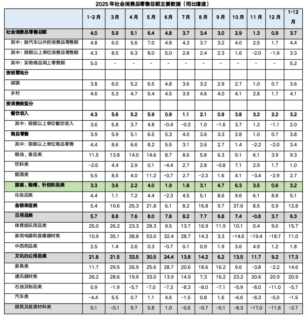 2025年,社零总额同比增长3.7%,除汽车以外的消费品零售额同比增长4.4%;其中,城镇消费品零售额同比增长3.6%,乡村消费品零售额同比增长4.1%。