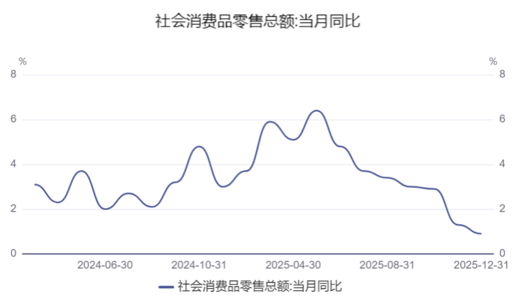(1)消费:12月社零同比增长0.9%,增速较上月回落0.4个百分点