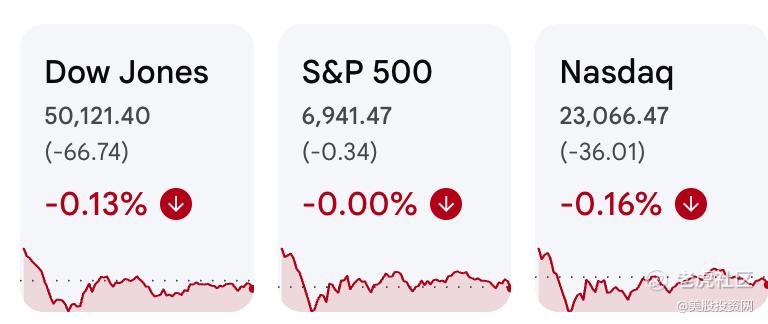 截至收盘,道指下跌0.13%,纳指下跌0.16%,标普500微跌0.01%,基本收平。