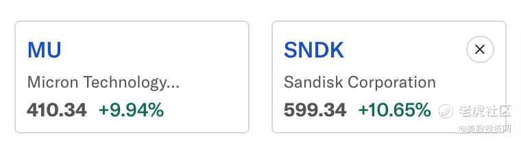 美光与SNDK大涨超10%: 市场无视大盘波动,重新向AI基础设施链条靠拢。美光( $美光科技(MU)$ )因HBM4产能释放的预期成为资金追逐的目标。摩根士丹利周三将美光目标价从350美元大幅上调至450美元,并维持“增持”评级。SNDK的上涨则反映存储与数据需求扩张逻辑延续。AI核心硬件的确定性溢价依然存在。