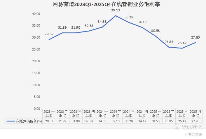 CEO周枫在业绩会上说得很直白:“拓展客户是第一性原则”。本季度,新客户贡献了约30%的广告收入。这也解释了前几季度毛利率为何短暂承压——新客户导入期成本较高。Q4有道广告业务毛利率环比回升2.38个百分点,料广告业务毛利率“底部”已现,盈利质量开始改善。