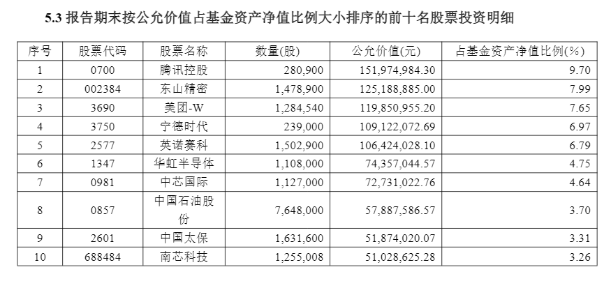 重仓腾讯、美团以及电子板块