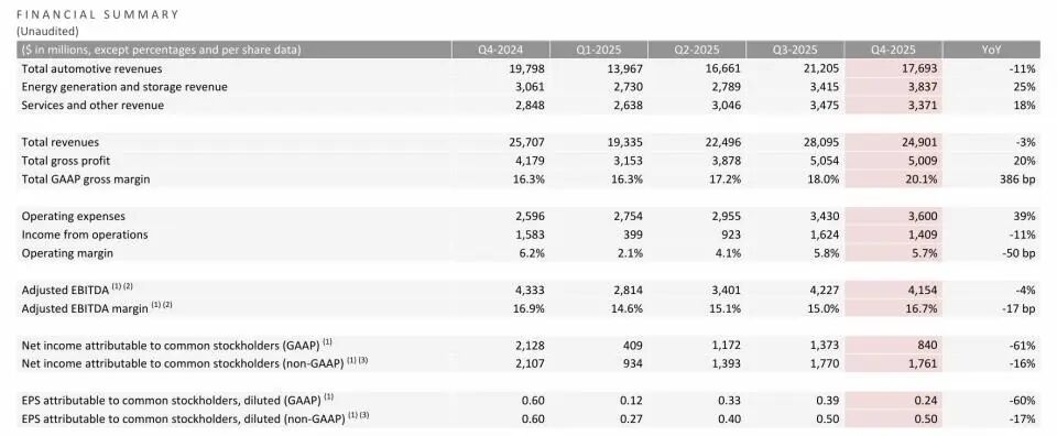 图源:特斯拉2025年第四季度业绩