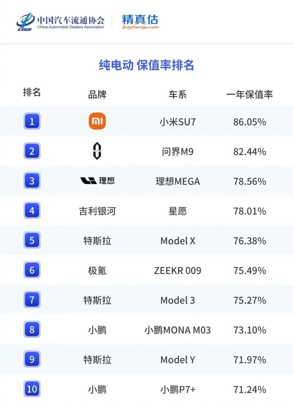 而根据最新的国内保值率年度排行来看,特斯拉之前一直维持的高保值率排名,也在不断滑落。