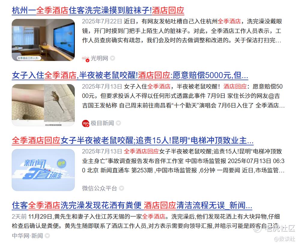华住集团前员工曾向媒体透露,为控制成本,一些全季酒店存在夜间人员配备精简的情况,例如安保人员可能同时承担运送物品等职责。